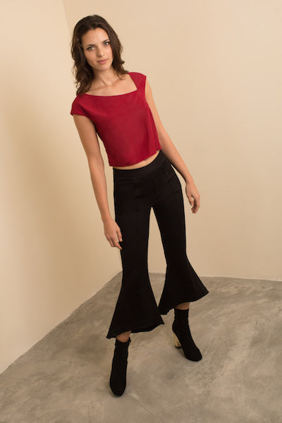 A must-have pair of ultra-flattering trousers. The high waist, fitted style and flared shape guarantee an elongating, slimming effect. A versatile trouser, you can wear this style with a flared sleeve top for a fashion-forward dramatic look, a classic shirt for work or even a strappy camisole for a more relaxed look.